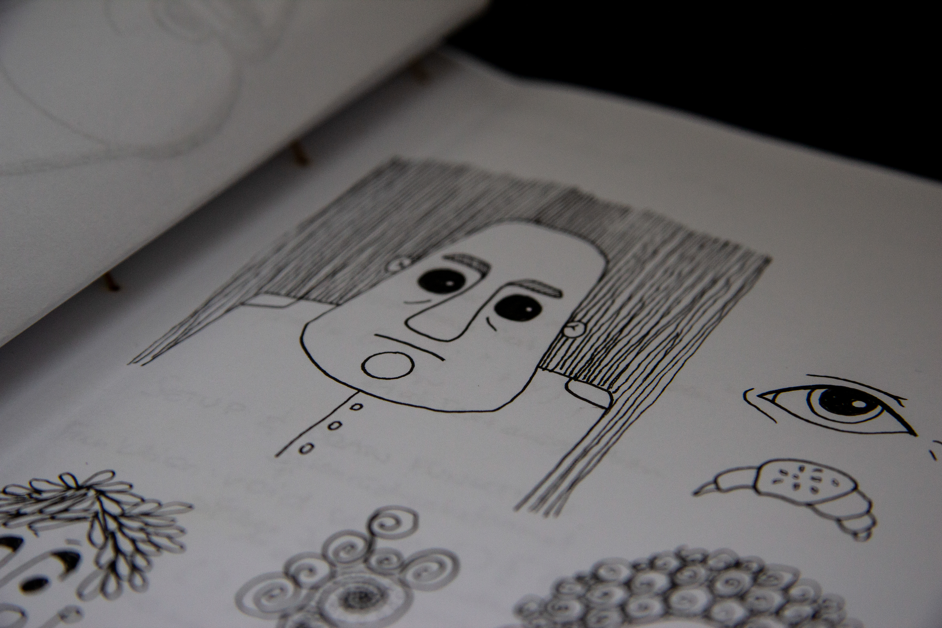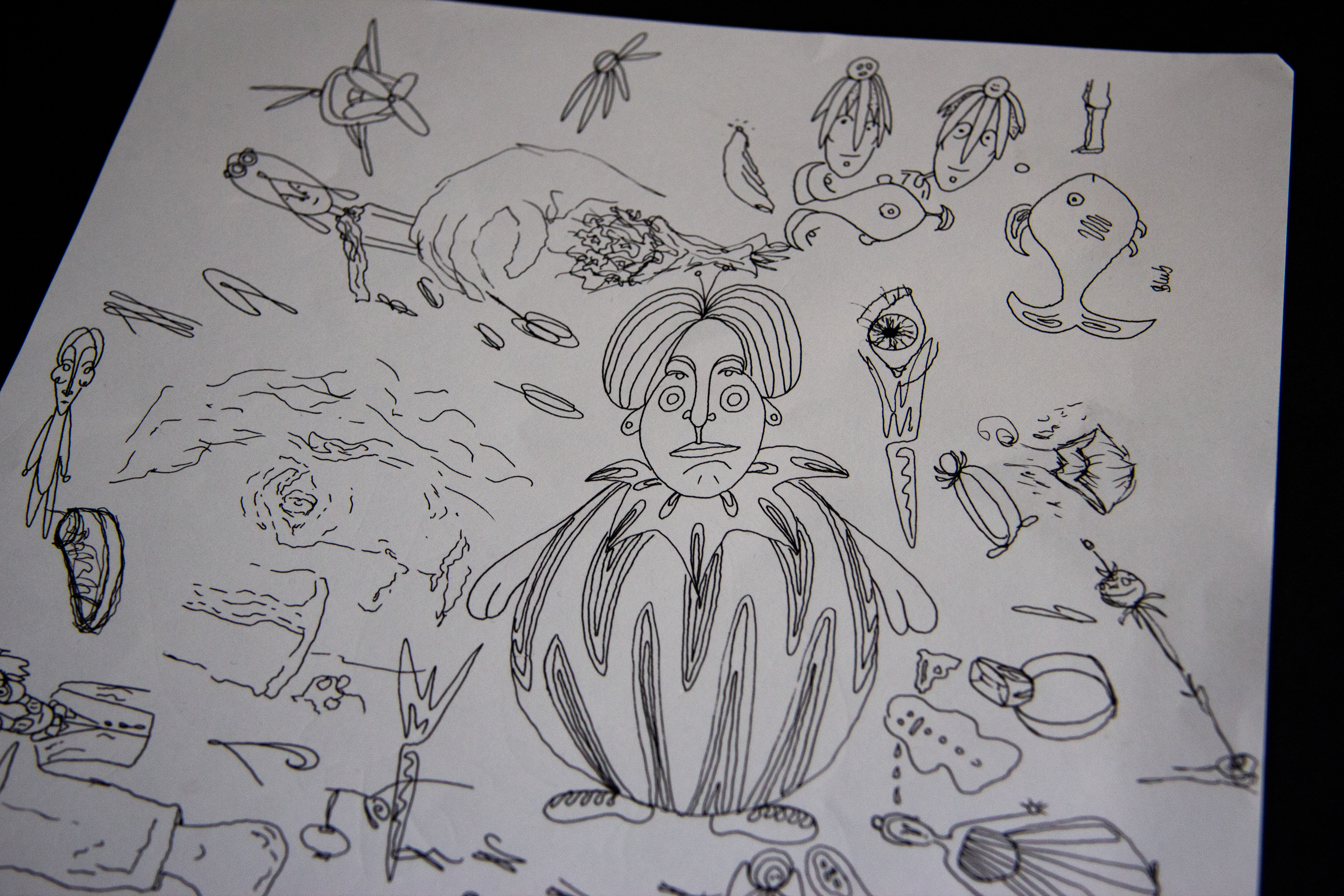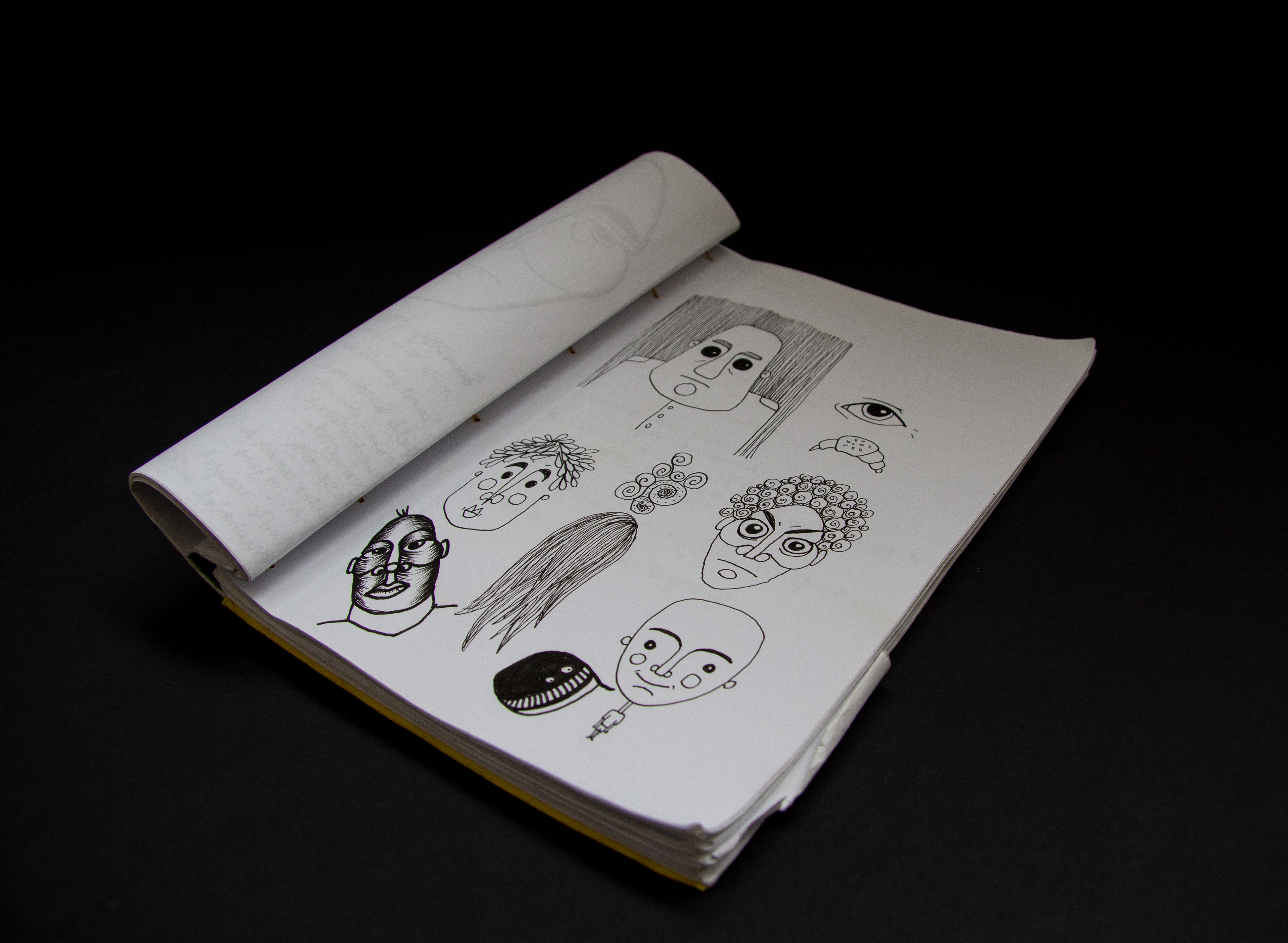 Various sketches and drawings, more or less elaborated. Pen on paper.