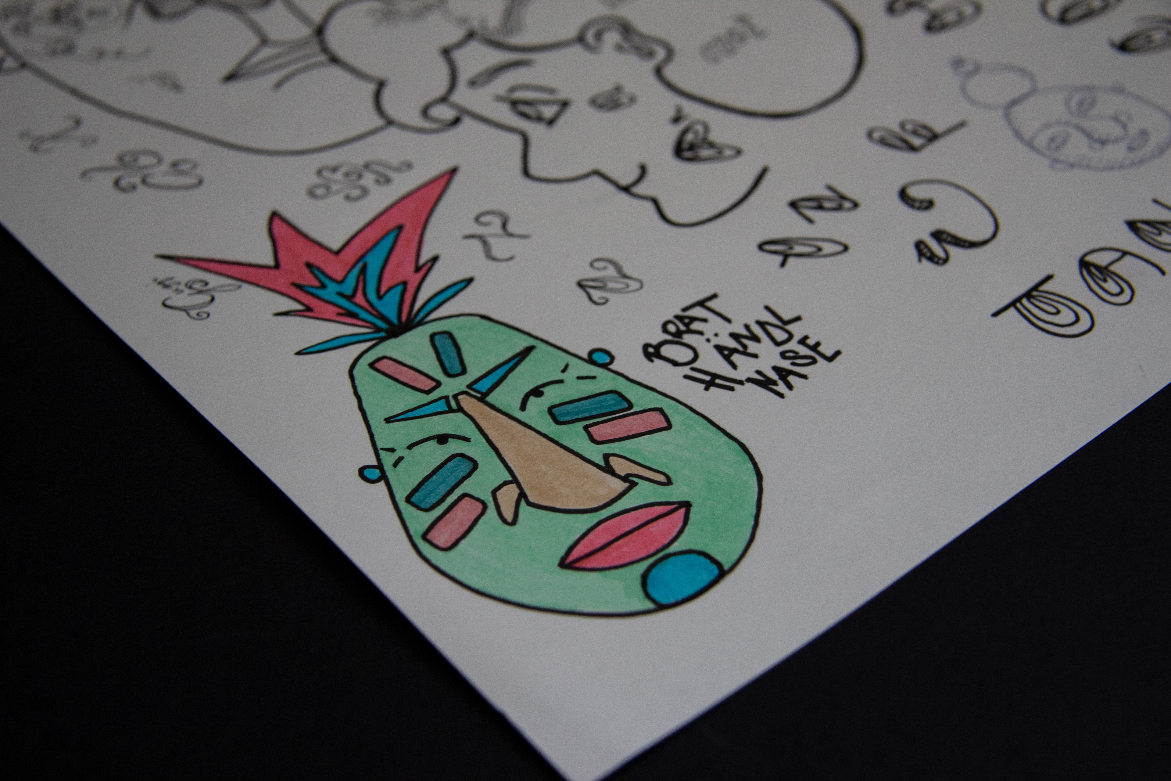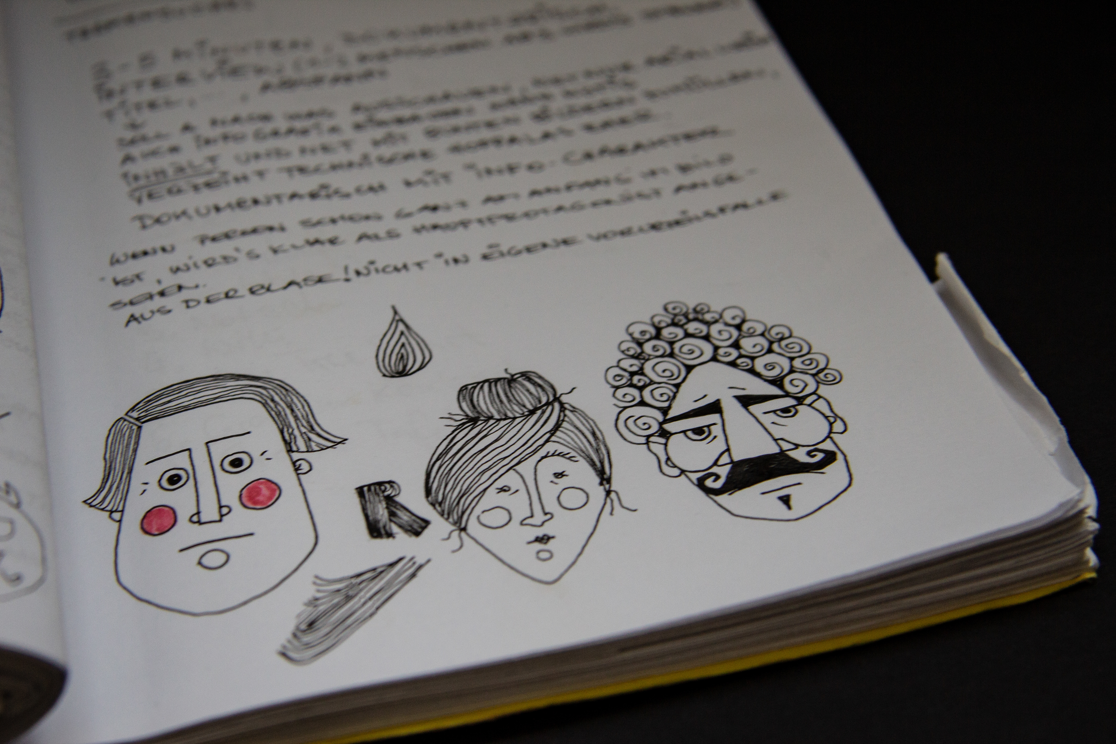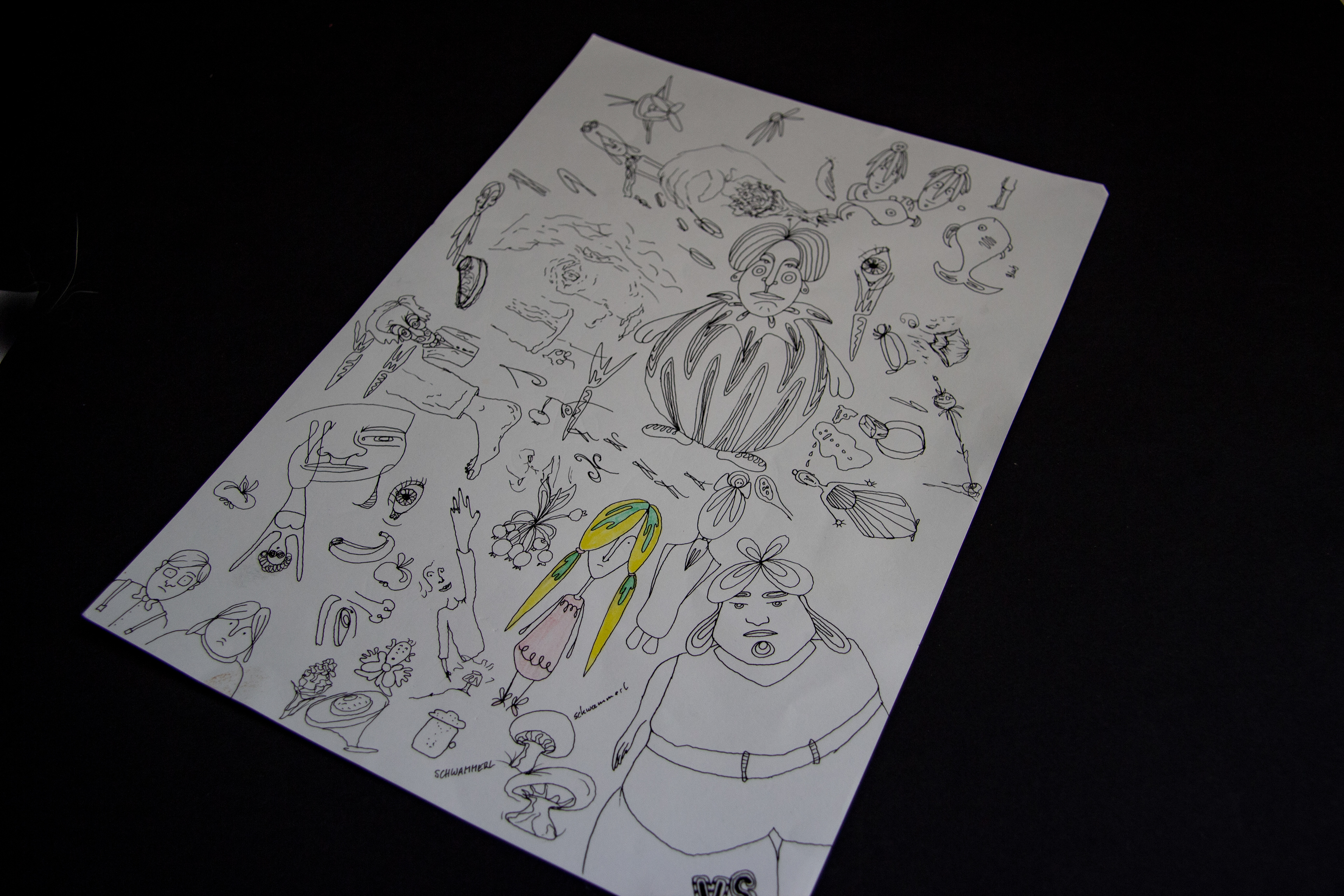 Various sketches and drawings, more or less elaborated. Pen on paper.